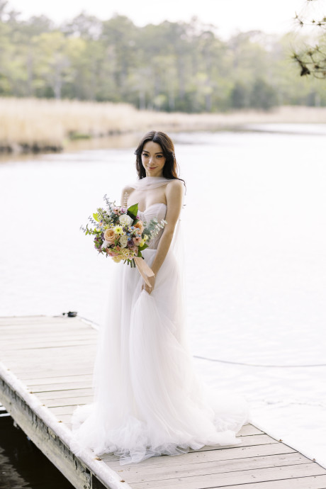 Dani's passion lies in growing flowers, and so a large part of the business lies in providing flowers for wholesale. However, through selling to and working with other designers, Dani also learned about the mechanics, color palettes, tips, and tricks of floral design. Dani laughs, "Call it passive training, if you will. I have talented designers all around me who I've been privileged to learn from. I still bring in freelance designers to help during the busy season." But putting her hand to design has led to some amazing compositions and arrangements, and a recently styled shoot on family hunting property on the Wicomico River. The shoot featured Winters Farm florals in a design style she calls "Eastern Shore meets Coastal".